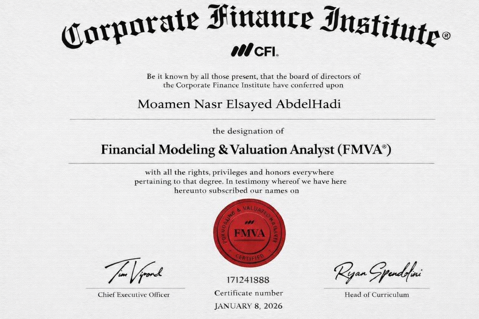 ✅ CFI - FMVA Certification " ➡️ Certificate